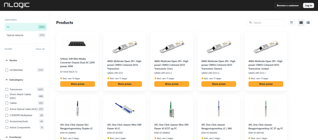 Vi erbjuder ett brett sortiment av produkter från tillverkare som GlobalFiber, med Smartoptics och flera andra tillverkare som snart kommer att läggas till i sortimentet.